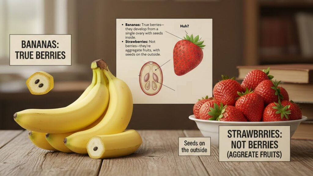 Bananas are berries; strawberries aren’t.